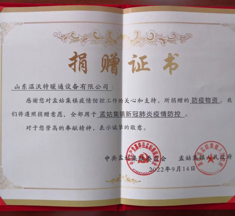 山東溫沃特暖通設備有限公司用行動擔當社會責任,助力疫情防控。 2022-9-16 本文被閱讀 3330 次
